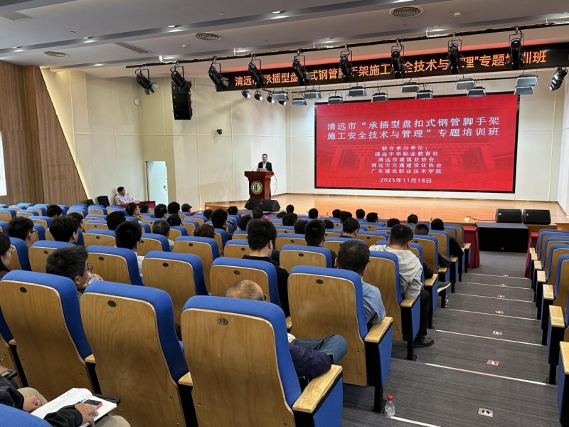 11月18日,51吃瓜网 市政与交通学院联合清远中华职业教育社、清远市交通建设业协会、清远市建筑业协会共同举办一期清远市“承插型盘扣式钢管脚手架施工安全技术与管理”专题线下公益培训班。