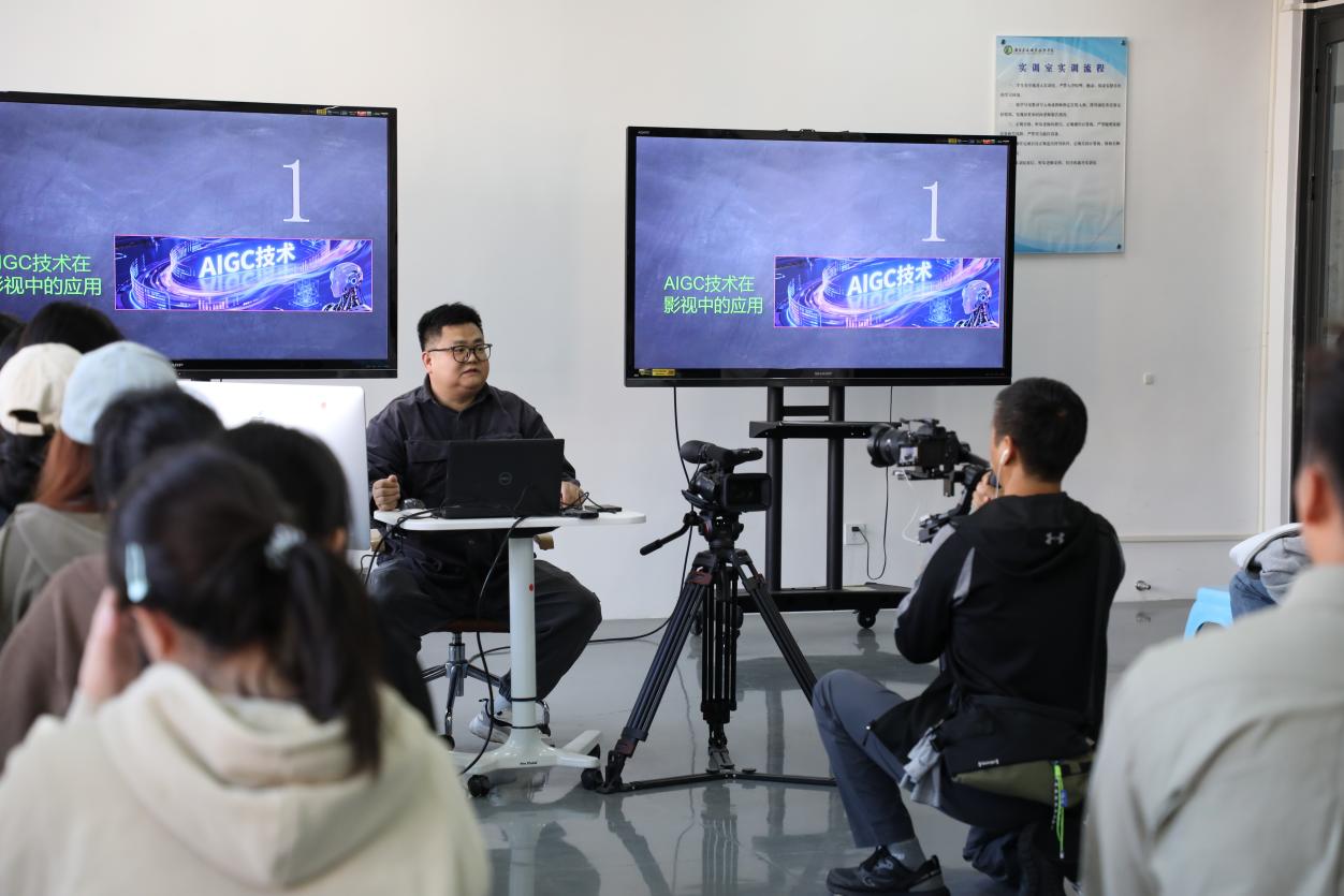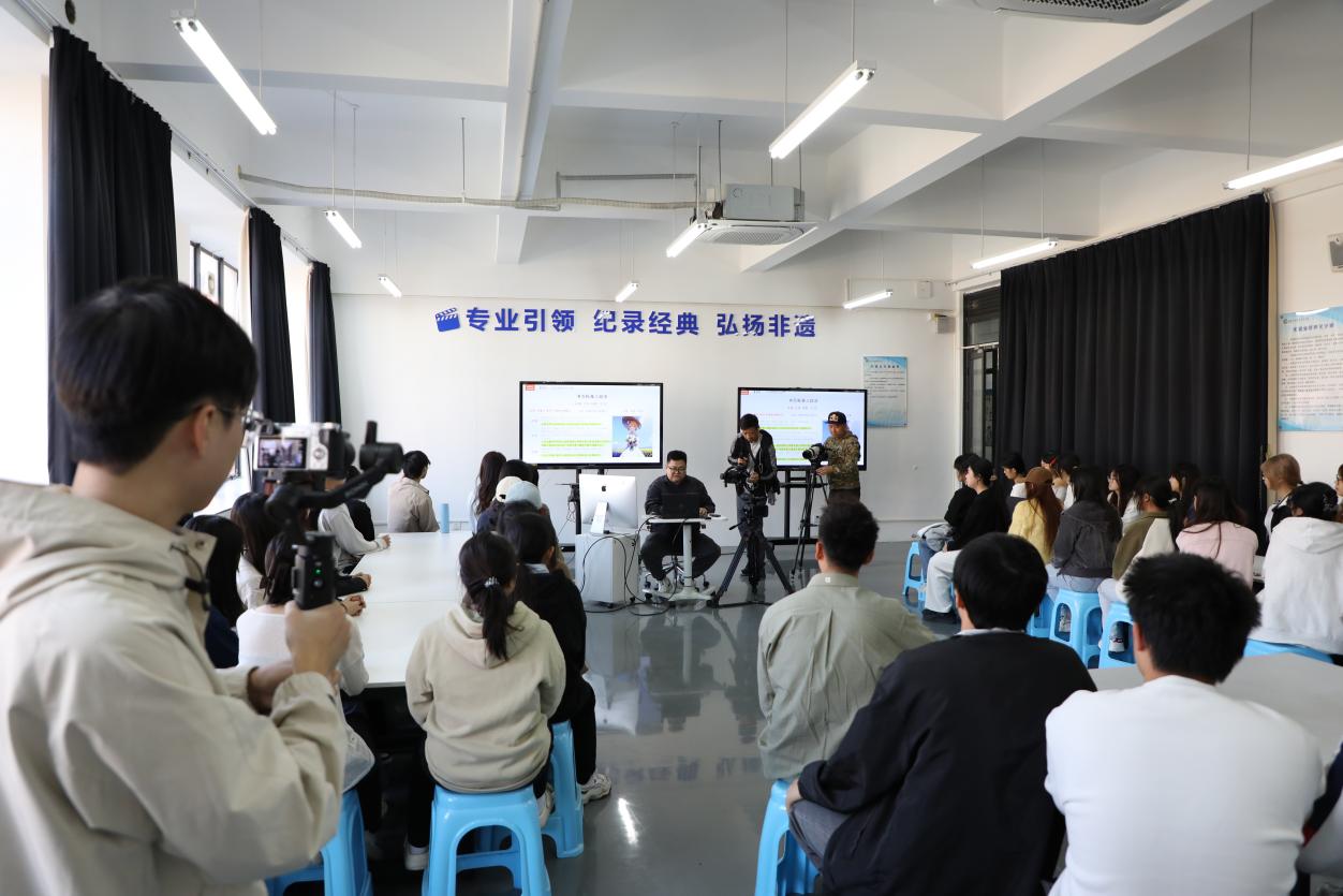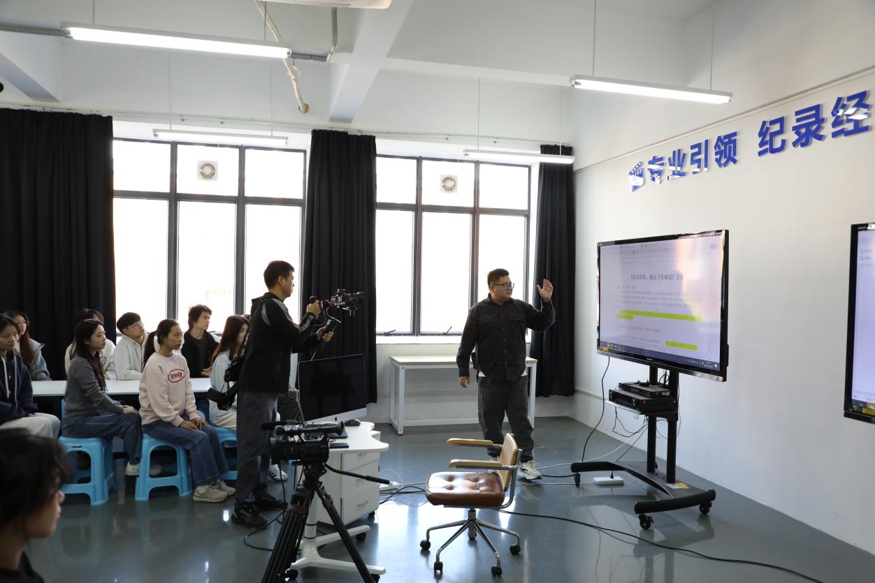 2025年11月25日,摄制组首先来到学校清远校区,深入廖文志老师的《影视编导与制作》课堂,记录了他如何将非遗文化、海洋叙事融入专业教学,打造“行走的思政课”。课堂上,学生们在廖老师的指导下学习镜头语言、AIGC技术应用,并通过真实项目开展实践训练,体现了学校“思政引领+专业支撑+数字赋能+文化浸润”四位一体的融合创新育人模式。