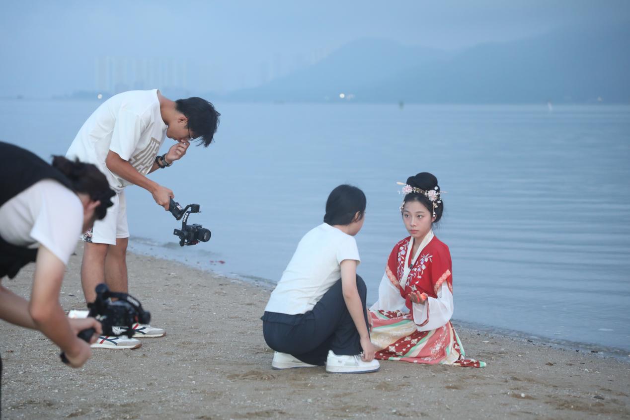12月2日至3日,摄制组随廖文志及“湾区新青年实践队”成员奔赴惠州市惠东县稔山、巽寮等地,实地拍摄团队开展海洋文化数字化保护与乡村振兴实践的过程。这支以“湾区新青年”命名的团队,其初衷正是希望青年学子不仅是文化的旁观者,更要做粤港澳大湾区文化传承的“弄潮儿”。“取名‘新青年’,重在‘新’字。”廖文志在采访中说,“是希望他们以新时代青年的视角与前沿技术相融,重新激活传统,让文化在创新中延续,重在引导湾区青年增强服务国家发展的使命感和担当作为意识。”