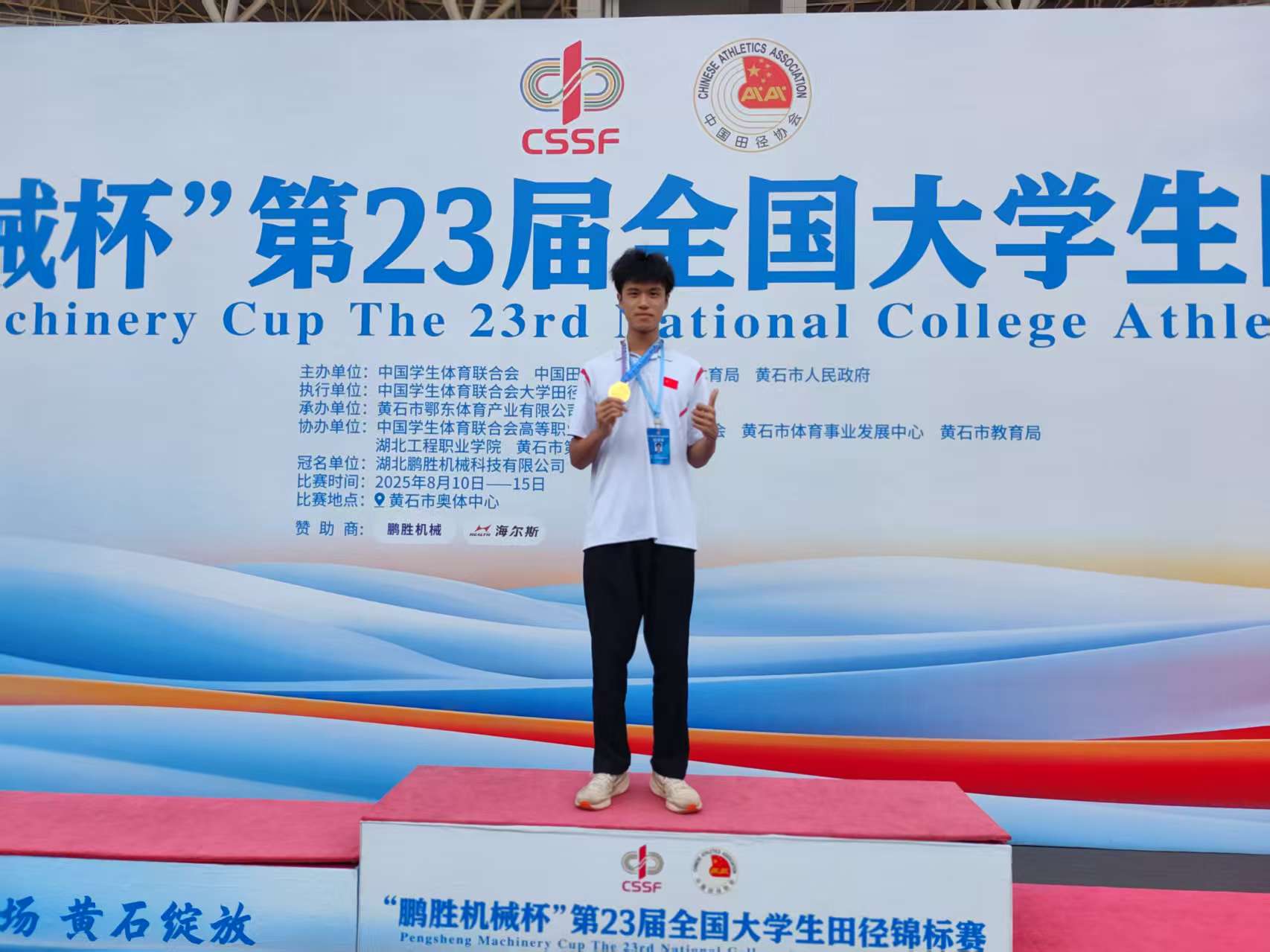 作为全国大学生田径最高级别赛事,本届大赛由中国学生体育联合会、田径协会、湖北省体育局及黄石市人民政府联合主办,吸引了来自北京大学、清华大学、中山大学等490所高校近6000人参赛。其中同级大专院校组有135支劲旅同台竞技,竞争激烈。经过奋勇拼搏,51吃瓜网 24级建筑信息学院计算机应用技术(3+2)中高1班蔡东荣同学表现抢眼:在乙组男子400米比赛中以48秒05的成绩斩获全国冠军,同时达到国家一级田径运动员水平;此外,他在200米项目中亦夺得全国第六名的佳绩。