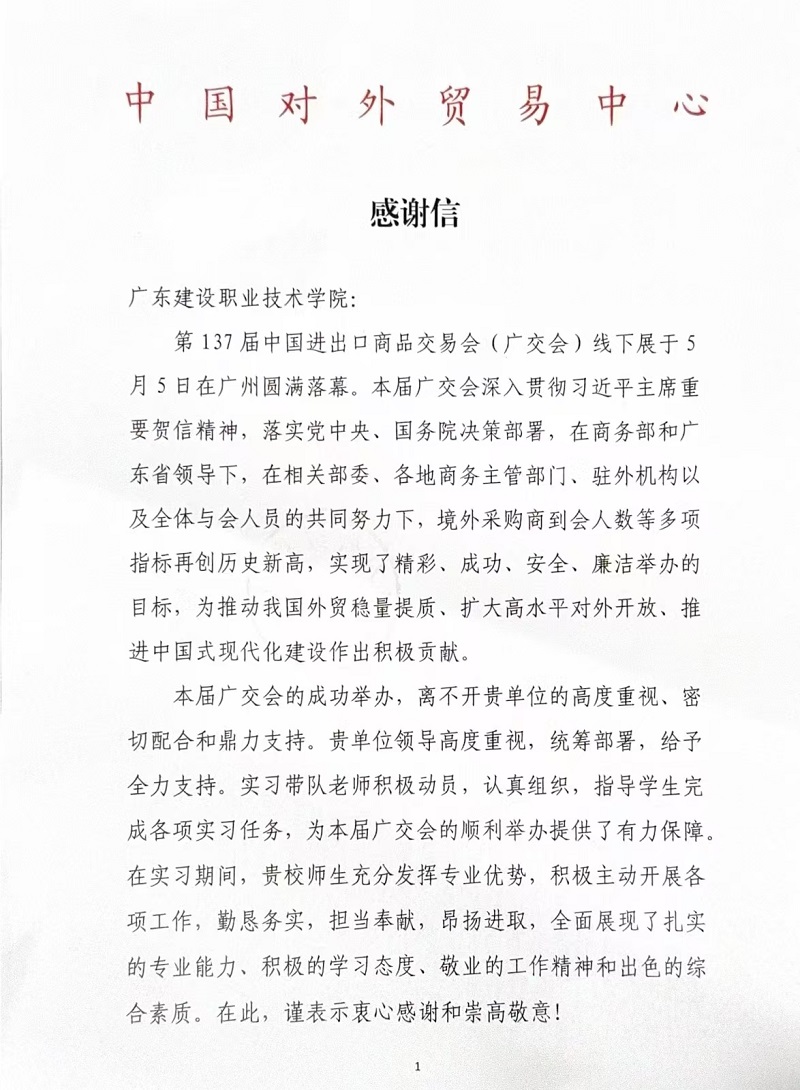 广东建院经贸学子高质量服务第137届广交会获表扬