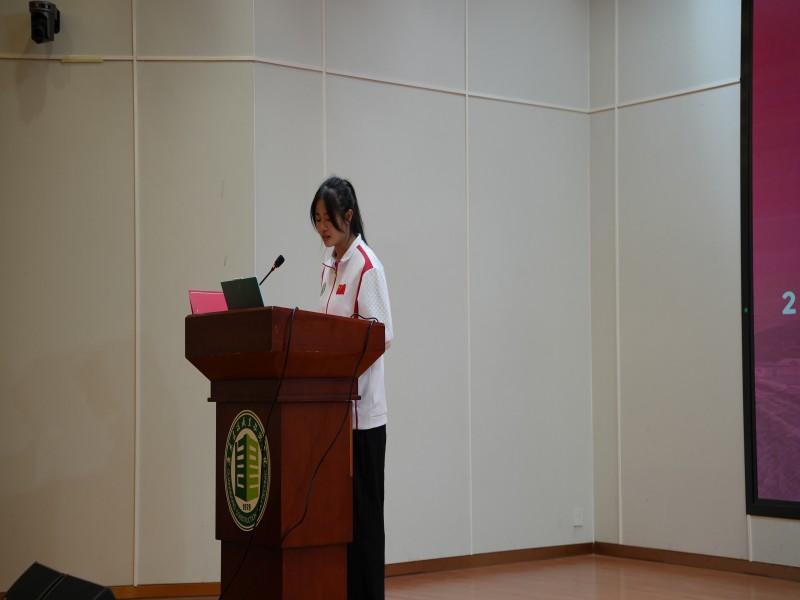 2024年校运会女子组200米破纪录并代表学校参加省级比赛荣获多项奖项的优秀运动员代表郭琪巧分享了备赛与竞技经验。她提供了从心态调整到技巧运用的实用建议,为运动员们加油鼓劲。