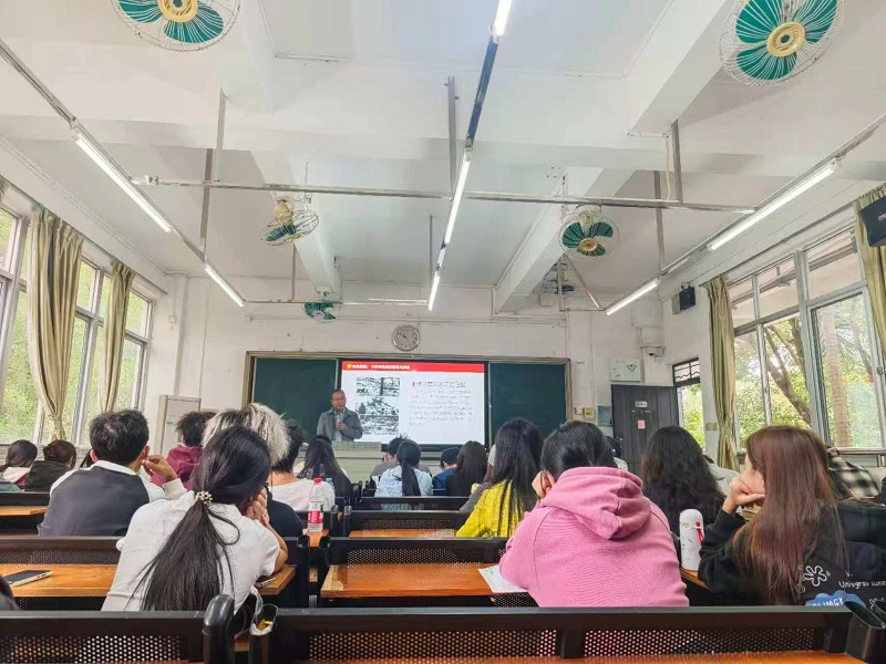 课堂上,马振华回顾了十四年抗战的血色征程和英烈们的光荣事迹,深情回顾了中国人民在抗日战争中展现出的天下兴亡、匹夫有责的爱国情怀,视死如归、宁死不屈的民族气节,不畏强暴、血战到底的英雄气概,百折不挠、坚忍不拔的必胜信念。希望当代青年学子深刻领悟抗战精神的时代价值,将个人理想融入民族复兴的伟大实践,号召同学们以“强国有我”的担当精神,在科技创新、社会服务、文化传承等领域勇立潮头。