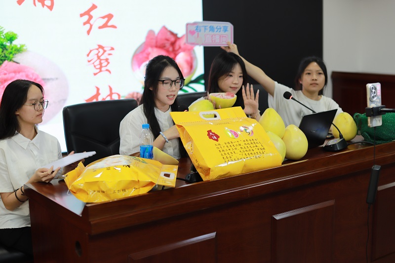 学生进行蜜柚电商直播带货现场演示