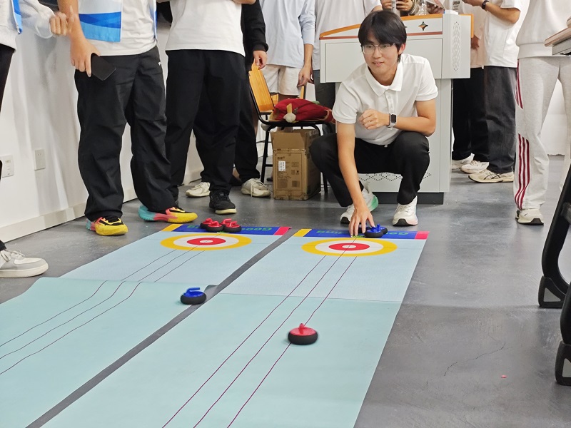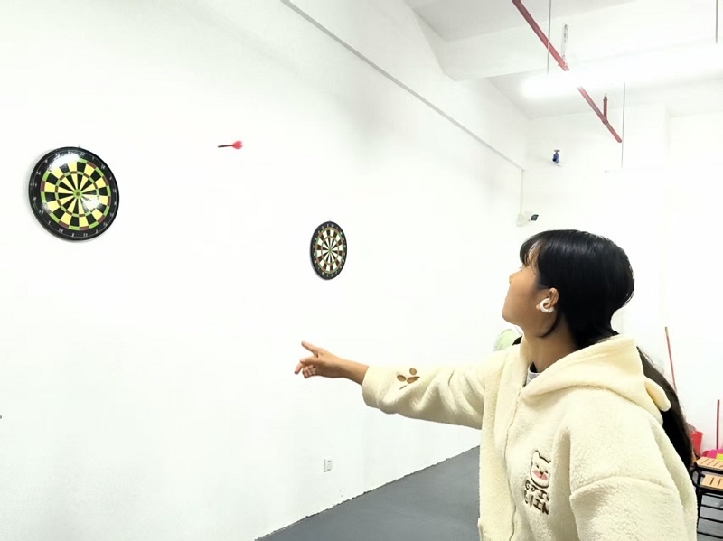 活动中,同学们以宿舍或小组为单位,在轻松愉快的氛围中体验团体协作与竞技乐趣。飞镖项目锻炼了大家的手眼协调能力与专注力,陆地冰壶则考验团队策略与沟通配合。现场气氛活跃,同学们在活动中不仅释放了学业压力,也增进了彼此的交流与默契。