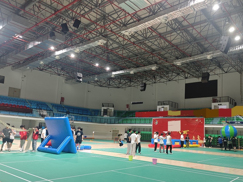 本届趣味运动会精心设计了多个富有创意与挑战性的项目,旨在全方位考验同学们的团队协作能力,激发同学们的参与热情。在“珠行万里”“运转乾坤”“跨栏高手”“共创蓝图”和“无敌风火轮”等项目中,同学们以饱满的热情投入其中,展现了极高的团队凝聚力和个人竞技水平。无论是手持 U 型槽传递乒乓球时的小心翼翼,还是齐心协力推动充气球前行时的默契配合;无论是跨越充气栏架时的矫健身姿,还是拼图接力中的争分夺秒,抑或“风火轮”中整齐划一的步伐,每一个项目都充满了欢声笑语与紧张刺激,充分体现了趣味运动会的独特魅力。