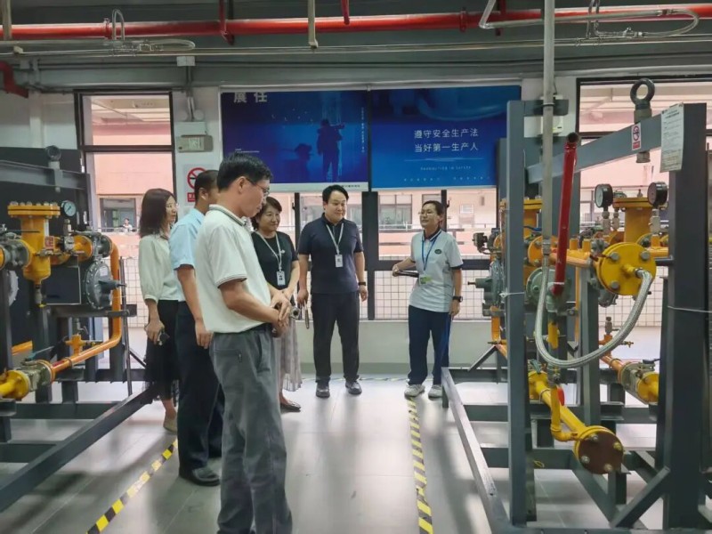 在实践教学环节,我院教师团队实地考察了嘉禾校区燃气专业国家级生产性实训基地。25燃气2班学生代表通过“设备操作演示+虚拟仿真体验+竞赛成果展播”三维展示,生动呈现了“教、学、做、赛、创”一体化教学模式。曾跃飞院长对实训基地“真设备承载真项目、真考核对接真岗位”的特色给予高度评价。