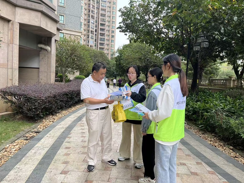 另一组志愿者在社区广场开展健康与安全知识宣传。他们通过发放宣传手册、派送驱蚊液等方式,向居民普及基孔肯雅热预防知识,提醒大家注意防蚊灭蚊、保持环境卫生。同时,围绕反诈防骗、反邪教等内容,结合典型案例进行讲解,帮助居民增强防范意识。
