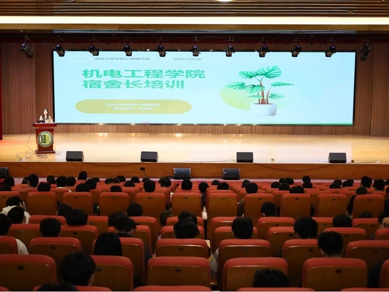 10 月 28 日,机电工程学院在清远校区学术报告厅召开宿舍长专题会议,旨在强化宿舍管理、明确宿舍长职责。学院各年级宿舍长参会,会议由学院辅导员杨旭莹、陈可主持并对宿舍长开展相关培训。