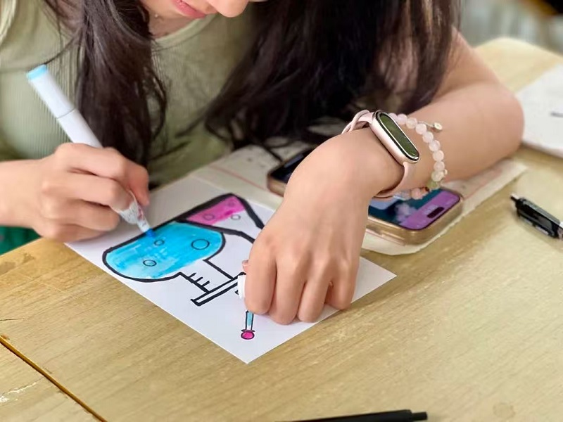 同学们通过书信撰写和简笔画与心中的榜样展开“对话”,或伏案书写饱含深情的信件,或精心勾勒象征榜样精神的图案,以独具匠心的方式,生动展现出对榜样丰富内涵的深刻解读与源自心底的深切敬意。信纸上,真挚的文字倾诉着对钱学森等科学巨匠创新精神的景仰、对革命先烈英勇事迹的追思;画纸上,同学们用象征物传情达意——科研笔记代表钱学森的求索精神,麦穗象征袁隆平的奉献情怀,钢笔与文稿勾勒鲁迅的文学风骨。活动尾声,同学们手持作品合影,让这些凝聚着敬意的文字与图画,与青春笑脸共同定格。